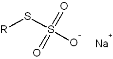 - RS−SO−3Na+ + NaSR' → RS−SR' + Na2SO3