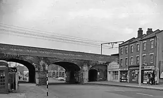 ![]() Site of the closed Burdett Road station in 1962 | |