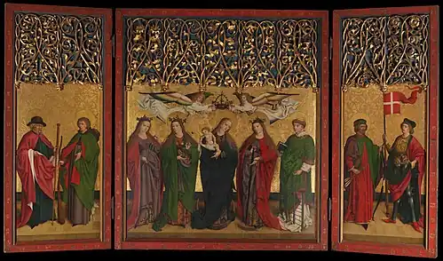 The Burg Weiler Altar Triptych (Altarpiece with the Virgin and Child and Saints) or Master of the Burg Weiler Altar is a 1470[1] religious painting. It is in the collection of the Metropolitan Museum of Art.[2] The altarpiece is Middle Rhenish, made in North Württemberg (now Baden-Württemberg).[3] It was originally in the chapel of the castle of Burg Weiler near Heilbronn.[3]