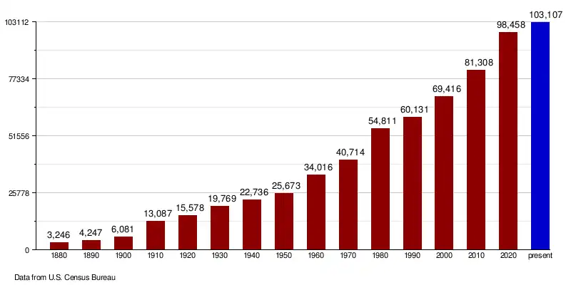 Race / ethnicity (NH = non-Hispanic) Pop. 1980[16] Pop. 1990[17] Pop. 2000[18] Pop. 2010[19] Pop. 2020[20]