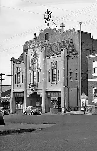 In 1879, a small town hall was built on the intersection of Mount Street and Cattley Street. When a larger town hall building was erected next door, the original hall was converted into the larger hall's stage area, opening as the Town Hall Theatre in 1888. A second story was constructed was in 1908 and by 1913 the Emu Bay Council was operating the live performance space as the Burnie Theatre, although it was often referred to as the "Municipal Theatre" or "Civic Theatre" in print to create separation between the theatre and the township's namesake.[3] The theatre was screening silent movies by 1918 and on 31 December 1929 screened its first talkie, The Broadway Melody.[4]