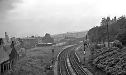 In June 1845 the Manchester and Leeds Railway (M&LR), at that time a rival of the ELR, was authorised to build a single-track branch, the Copy Pit Line, from its main line at Todmorden to Burnley; whilst it was under construction the M&LR amalgamated with other railways in 1847 to create the Lancashire and Yorkshire Railway (LYR), and on 12 November 1849, the branch was opened by the LYR. The Burnley terminus of this was on the south-eastern side of Manchester Road and was named Burnley Thorneybank; it had a single platform for passenger trains, which could accommodate six coaches; other facilities at the station were a goods shed and an engine shed. There was no signal box, the levers to operate the various points in the station area instead being situated next to each of the points concerned. To begin with there was no connection to the ELR line, but in August 1850, a double-track link to the ELR at Gannow Junction (between Rose Grove and Burnley Westgate) was opened, and this link was known as the East Lancashire sidings. Manchester Road crossed on a bridge over the East Lancashire sidings. A fatal accident occurred at Thorneybank station on 12 July 1852.[1][3][4]