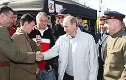Critics panned many provocative episodes, such as a German pilot defecating on a Soviet ship, or Kotov's dipping Stalin into a cake. The Russian media reviews were especially hostile to the film, because of its revisionist portrayal of Soviet army and Soviet leaders. As web publicist Dmitry Puchkov noted, "like any other nation, Russians don't want to see their fathers portrayed as shit."[5] Western critics were mostly negative as well. However, the Hollywood Reporter's Kirk Honeycutt felt that, while Russian critics attacked the film for "sticking too closely to the Kremlin's approved version of World War II and for its promotion of Orthodox Christianity," it was a "much, much better film than its Russian reviews indicate."[6] He likened its portrayal of the madness of World War II to the American Joseph Heller's Catch-22.[3] According to the critic Oleg Zolotarev, "The reasons it has flopped are psychological [not artistic]. Mikhalkov is no longer seen as a director but as a state bureaucrat."[7]