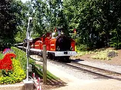 The Busch Gardens Railway is a 3 ft (914 mm) narrow-gauge amusement park heritage railroad attraction located within Busch Gardens Williamsburg amusement park in Williamsburg, Virginia. Opened in 1975, the railway is 1.5 miles (2.4 km) long, and has stations in the Heatherdowns, Festa Italia, and New France sections of the park. It features three trains pulled by 4-4-0 steam locomotives manufactured by Crown Metal Products.[1]