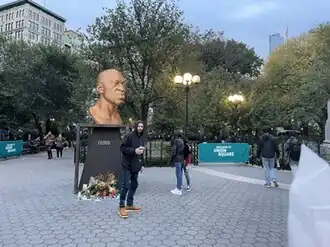 The bust of George Floyd is a sculpture of George Floyd (1973–2020), an African-American man who was murdered by a police officer during his arrest in Minneapolis. Initially situated in the Flatbush neighborhood of Brooklyn, New York, it is currently displayed in Union Square, Manhattan.[1][2]