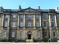 Charlotte Square was designed by Scottish architect Robert Adam. The Lord Provost and Edinburgh Town Council commissioned Adam to draw up plans for the square in 1791 as the culmination of Edinburgh's first New Town. However, Adam died in 1792, and his completed designs had to be realised by others. The north side of the square was built first and is faithful to his intentions.[7] The plot where Bute House now stands was sold in 1792 by public roup (auction) to Orlando Hart, a shoemaker, prominent member of the Town Council and deacon-convener of the trades in Edinburgh, for £290.[8][9]