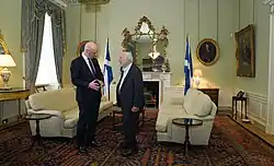 The drawing room in Bute House is commonly used by the First Minister to meet heads of foreign governments, other official guests and dignitaries, and is also used on occasions by the First Minister to hold media press conferences.[36]