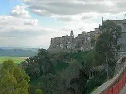 The origins of Butera date back to the Early Bronze Age.[10] During the 6th century BC, the town—then likely the Omphace described by Pausanias—was abandoned and was rebuilt only during the period of Timoleon, shortly after the middle of the fourth century BC[11] It was, however, a small village inhabited by farmers, subject to external aggression throughout the early Middle Ages. Butera, being situated close to Gela, one of the most prominent ancient Greek cities of Sicily under Magna Graecia, was itself settled by Greeks, especially from Crete.[10][12] The dialect spoken in the region was Doric Greek.