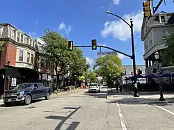Offset intersection of Butler Pike (foreground) and Germantown Pike in Plymouth Meeting