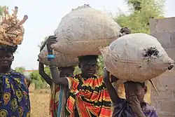 Women gathering and collecting charcoal from kilns for home use.