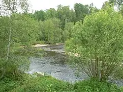 Writer and art historian Vladimir Prytkov, author of a biography of the artist, reported that these later studies were painted by Levitan in the summer of 1892 in Vladimir Governorate, when he was living at the Gorodok estate, located near the Boldino Moscow-Nizhegorodskaya railway station. According to the testimony of local historian Nikolai Solovyov, Levitan wrote these sketches near the Lipnya River (apparently meaning Bolshaya Lipnya), near the village of Abbakumovo (now within the town of Kosteryovo).[48] Based on these details, Prytkov came to the conclusion that, like Levitan's earlier painting A Quiet Monastery, the painting By the Pool can be considered a "synthetic landscape", containing a combination of the artist's impressions of different places.[49] Alexei Fedorov-Davydov disagreed with this conclusion, believing that these sketches, made elsewhere, were used by Levitan only to refine the image of the water, which "did not change the nature of the image of the landscape, which is nothing but in a certain sense interpreted by the artist, but still nature".[50][51]