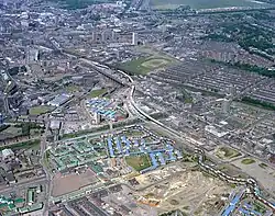 Aerial photograph, from 1978, of the Byker Wall under construction