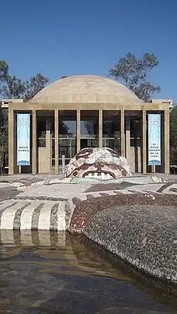 The Cárcamo de Dolores (Sump of Dolores) is a hydraulic structure located on the Second Section of Chapultepec Park, in Mexico City, comprising the building designed by architect Ricardo Rivas, inside the originally underwater mural Agua, el origen de la vida ("Water, source of life") of Mexican muralist Diego Rivera, the art installation Cámara Lambdoma by Ariel Guzik, and in outside, the Tlaloc Fountain, also of Rivera.[1]