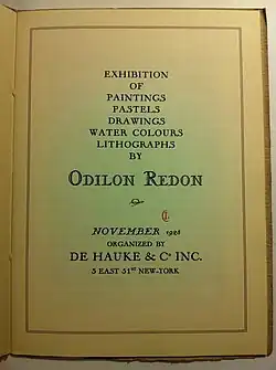 "Exhibition of paintings, pastels, drawings... by Odilon Redon, november 1928, organized by De Hauke & Co. Inc.", New York, De Hauke & Co. Inc., 1928
