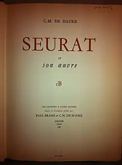 De Hauke was the author of the complete catalogue of Georges Seurat, published in 1961.[15][16] He gave his collection of French drawings to the British Museum.[17]