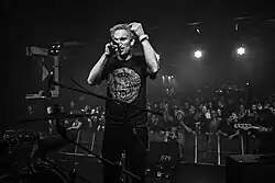 Gábor Szakácsi with Therapy? in Seattle (2001).L-R-Graham Hopkins; Andy Cairns; Gábor Szakácsi; Michael McKeegan.-Front:Martin McCarrick