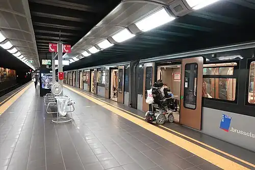 Preceding station The icon for Brussels Metro. A white letter 'M' on top of a pink circle. Brussels Metro Following station