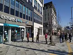 South Korea introduced what was considered one of the largest and best-organised epidemic control programs in the world, along with Singapore, Taiwan, and Vietnam.[11][12][13] Various measures were taken to mass test the population for the virus, and isolate any infected people as well as trace and quarantine those they had contact with, without any further lockdown.[14][15] The rapid and extensive testing undertaken by South Korea has been judged successful in limiting the spread of the outbreak, without using the drastic measure of locking down entire cities.[14][16][17] Despite these successful measures, however, a significant rise in the number of new infections occurred beginning in August 2020, with clusters being linked to Protestant churches in the Seoul Metropolitan Area.[18][19] Another rise began in the third week of November, and Seoul has since entered a third wave of infections.[20] On 24 November, the government raised the social distancing level in Seoul to level 2.[21] On 29 November, the social distancing level in other areas of the country was raised to 1.5.[22] In December, it was raised to level 2.5 in some metropolitan areas and 2 in other areas.[23]