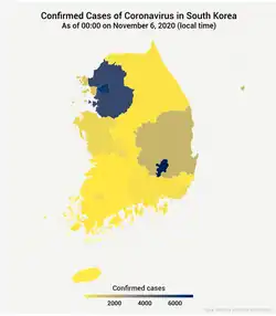 113. ^ "The Latest: S. Korea eases restrictions as virus cases drop". Associated Press. 13 September 2020. Retrieved 13 October 2020.