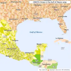 It was founded as a joint project of Swiss Reinsurance Company, Gerling-Konzern Globale Reinsurance Company, and Munich Reinsurance Company and is an independent group which promotes the accurate and efficient mapping and evaluation of catastrophe perils. CRESTA has set itself the aim of establishing a globally uniform system for the accumulation risk control of natural hazards - particularly earthquakes, storms and floods. Those risk zones are essentially based on the observed and expected seismic activity, as well as on other natural disasters, such as droughts, floods and storms.[1]
