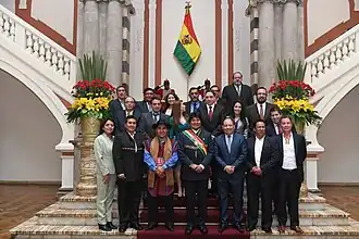 The Cabinet of Evo Morales constituted the 210th to 220th cabinets of the Plurinational State of Bolivia.[c] It was initially formed on 23 January 2006, a day after Evo Morales was sworn-in as the 65th president of Bolivia.[1][2]