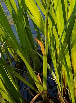 This cluster of poems contains a number of images and motifs that are repeated throughout, notably the Calamus root itself. Acorus calamus or Sweet Flag is a marsh-growing plant similar to a cat-tail. Whitman continues through this one of the central images of Leaves of Grass – Calamus is treated as a specific example of the grass that he writes of elsewhere. Some scholars have pointed out, as reasons for Whitman's choice, the phallic shape of what Whitman calls the "pink-tinged roots" of Calamus, its mythological association with male same-sex love, and the allegedly mind-altering effects of the root.[9] The root was chiefly chewed at the time as a breath-freshener and to relieve stomach complaints.