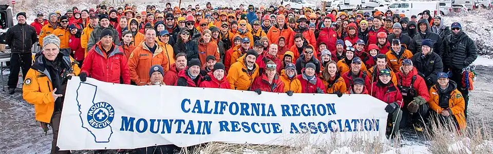 The California Region of the Mountain Rescue Association (Also called CRMRA) consists of 24 accredited (regular) teams, 6 associate members, and 5 Exofficio throughout California and Nevada. The California Region is one of the nine regions within the Mountain Rescue Association (MRA), a national volunteer organization in the United States dedicated to saving lives through rescue and mountain safety education.[1][2] California MRA teams respond to search and rescue operations in the unit's area of responsibility and to mutual aid calls anywhere in the state to assist other agencies.