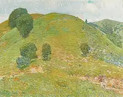 1914 California Hills, In Spring[9] Oil on canvas 30 × 32 in American Academy of Arts and Letters Hassam bequest, 1936[13]
