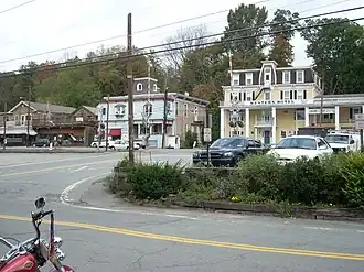 Callicoon got its name from Dutch hunters who settled in the location in the 1600s.[3] Because of the population of wild turkeys in the area, they named the community "Kollikoonkill" which translates into Wild Turkey Creek.[4] In addition to animal abundance, the area was a source for lumber and a transport center with the Delaware River offering access to coastal cities to the south and east. In the 1840s, the Erie Railroad added to transportation by passing through along the banks of the Delaware River to link the Great Lakes with the East Coast.[5] Because of the train station's vital central location, the community was renamed Callicoon Depot.[6]