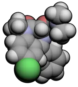Camazepam[2] is a benzodiazepine psychoactive drug, marketed under the brand names Albego, Limpidon and Paxor. It is the dimethyl carbamate ester of temazepam, a metabolite of diazepam.[3] While it possesses anxiolytic, anticonvulsant, skeletal muscle relaxant and hypnotic properties[4] it differs from other benzodiazepines in that its anxiolytic properties are particularly prominent but has comparatively limited anticonvulsant, hypnotic and skeletal muscle relaxant properties.