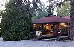 In 1922, the two main buildings were a recreation building and a spacious log lodge. The recreation building featured a large stone fireplace, and was equipped with a stage, library area, desks, games, piano and gramophone. Outdoor amenities included a diving raft, row boats, canoes, tennis court, playgrounds and a horse riding course.[1]