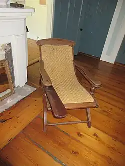 The Campeche (or butaca, butaque as it is more commonly known in Spanish) is a reclining, non-folding, sling-seat chair with a distinctive side-placed curule base. In North America, they are named for the Campeche region of Mexico's Yucatán Peninsula, and were popular in the Americas during the early nineteenth century. Similar versions of the form are found throughout Europe, such as the Schinkel writing chair at Schloss Charlottenburg in Berlin.[1] Other related forms include the "planter's chair" or "bootjack" (that bears folding arms that extend outward as leg rests) which is associated with equatorial climes and plantation-based societies.