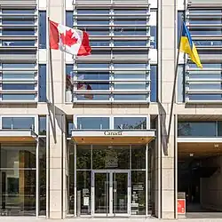The new ten-storey chancery was inaugurated in April 2005 by Adrienne Clarkson, then Governor General of Canada.