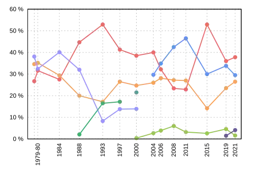 Votes by party throughout time