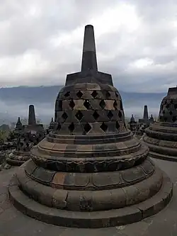 - ^ "Stupa adalah lambang dari agama Buddha yang berbentuk mangkuk terbalik, dengan bentuk persegi empat dan atau segi delapan (harmika)". Balai Konservasi Borobudur (in Indonesian). 2018-02-22. Retrieved 2021-07-21.