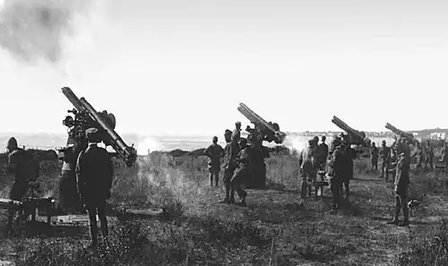 A Battery of 75/27 A.V. at the test range in Nettuno.