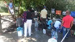 Doomsday predictions of Day Zero in Cape Town led many individuals and businesses to seek alternative water supplies from the Western Cape Water Supply System. Many locals, armed with plastic containers, collected water from mountain streams and natural springs around the city. This led to long lines and even fights between citizens, and the City stepped up security at popular locations.[89][46]