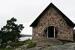 1958 Hilding started together with his family and friends to carry stones from the shores of the island to where the chapel would be. Without technical help he built metre thick walls and constructed a replica of St Anna old stone church which is from the 14th century. For the altar stones have been gathered from Old Swede's Church in Delaware, The Church of Laying Our Lady's Holy Robe in Kremlin, Moscow and the Lavra Monastery in Kyiv, Ukraine.