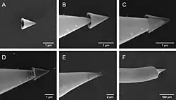 Carbon nanocones have been used to cap ultrafine gold needles. Such needles are widely used in scanning probe microscopy owing to their high chemical stability and electrical conductivity, but their tips are prone to mechanical wear due to the high plasticity of gold. Adding a thin carbon cap mechanically stabilizes the tip without sacrificing its other properties.[9]