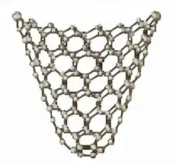 - ^ a b Krishnan, A.; Dujardin, E.; Treacy, M. M. J.; Hugdahl, J.; Lynum, S.; Ebbesen, T. W. (1997). "Graphitic cones and the nucleation of curved carbon surfaces". Nature. 388 (6641): 451. Bibcode:1997Natur.388..451K. doi:10.1038/41284.