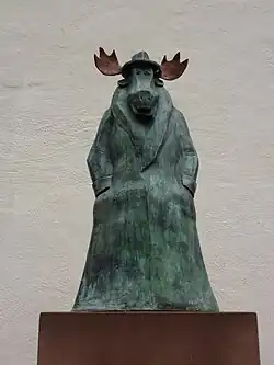 The trade mark of the museum is a bronze sculpture in front of the building by Hans Traxler. The Elch sculpture carries the names of the eight most important representatives of the Neue Frankfurter Schule, and a two-line poem by F. W. Bernstein, "Die schärfsten Kritiker der Elche / waren früher selber welche" ("The harshest critics of the moose / used themselves to be some").[1]