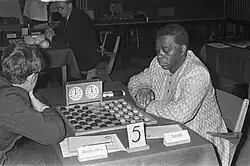 ![]() Carl Smith (right) during the WC international draughts 1972 against Andris Andreiko. | |