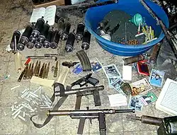 Carlo (Arabic: كارلو) (also referred to as Carl Gustav; Arabic pronunciation: كارلوجستاف, "Karlu Justhaf")[4] is an improvised submachine gun manufactured by small workshops in the Palestinian territories. The design was inspired by (and named after[5]) the Swedish Carl Gustaf m/45 and its Egyptian Port Said variant, however the similarity is often only passing.[1] The Carlo's homemade nature makes it affordable on the black market, where it is purchased not only by Palestinians targeting Israelis[6] but also by Arab-Israeli gangs.[4] The Carlo is cheap and requires little skill or equipment to manufacture, but it is inaccurate and prone to jamming and misfire.[1]