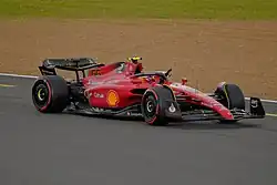 Sainz joined Scuderia Ferrari on a two-year contract from the 2021 season partnering Charles Leclerc and replacing Sebastian Vettel.[55] He qualified and finished in eighth place at the Bahrain Grand Prix, his first race for the team.[56] He started eleventh at the Emilia Romagna Grand Prix but progressed to fifth place by the end of the race.[57] He failed to score points at the Portuguese Grand Prix despite starting fifth, stating "we got it wrong with strategy".[58] He took his third career podium and first with Ferrari at the Monaco Grand Prix, where he benefited from Leclerc's failure to start and a pit stop issue for Valtteri Bottas to finish second.[59] Tyre wear issues meant neither Ferrari driver scored points at the French Grand Prix.[60][61] Sainz recovered from a twelfth-place start at the Styrian Grand Prix to finish sixth. A collision with George Russell on the first lap of sprint qualifying at the British Grand Prix dropped Sainz to the back of the field,[62] but he recovered places in sprint qualifying and in the race to finish sixth.