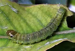 The larvae feed on a wide variety of deciduous trees, shrubs and herbaceous plants. It can become a pest on olive trees and avocados.