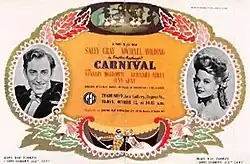 Carnival is a 1946 British drama film about a ballet dancer of the Edwardian era, directed by Stanley Haynes and starring Sally Gray, Michael Wilding, Stanley Holloway and Jean Kent. It is based on the 1912 novel of the same name by Compton Mackenzie,[1] which had previous been made into a 1932 film Dance Pretty Lady by Anthony Asquith.[2] It was shot at Denham Studios with sets designed by the art director Carmen Dillon.