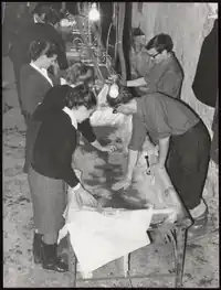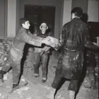 "Mud angels" recovering damaged books from a library, Florence, 1966