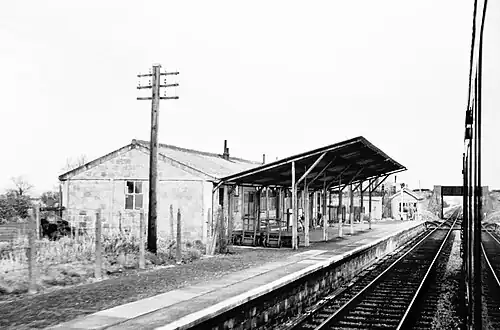 Carterton railway station was a railway station just north of the village of Black Bourton on the Oxford, Witney and Fairford Railway between Oxford and Fairford.[1] The station had two stone-built platforms, a passing loop, and a concrete station building.