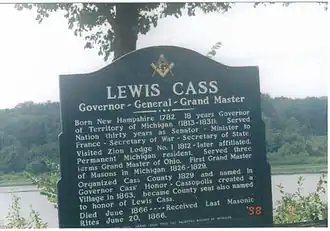Lewis Cass historical marker in Cassopolis, Michigan