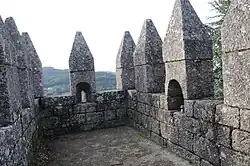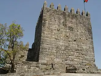 In 1121, D. Teresa of León sought refuge in the rebuilt castle, to which she was besieged by forces loyal to her half-sister D. Urraca, Queen of León. Urraca took Theresa captive.[1] However, an intervention by Bishop Gelmires forced the two to an agreement, the Treaty of Lanhoso, that preserved the land holdings of both sides.[1][2] Then, in 1128, she was imprisoned in the same castle, under the orders of her son, D. Afonso Henriques, after the Battle of São Mamede.